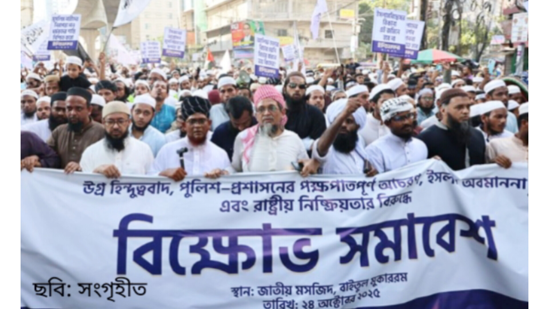 ঢাকার বায়তুল মোকাররম জাতীয় মসজিদের উত্তর গেটে শুক্রবার একটি গুরুত্বপূর্ণ বিক্ষোভ মিছিল অনুষ্ঠিত হয়। মিছিলে অংশগ্রহণ করেছিলেন বিভিন্ন নাগরিক ও সামাজিক সংগঠন, যাদের মধ্যে সবচেয়ে সক্রিয় ছিল ‘ইন্তিফাদা বাংলাদেশ’। বিক্ষোভকারীরা আন্তর্জাতিক কৃষ্ণভাবনামৃত সংঘ (ইসকন) নিষিদ্ধ করার এবং সংশ্লিষ্ট অপরাধীদের শাস্তির আওতায় আনার দাবিতে সরকারকে কার্যকর পদক্ষেপ নেওয়ার আহ্বান জানান।