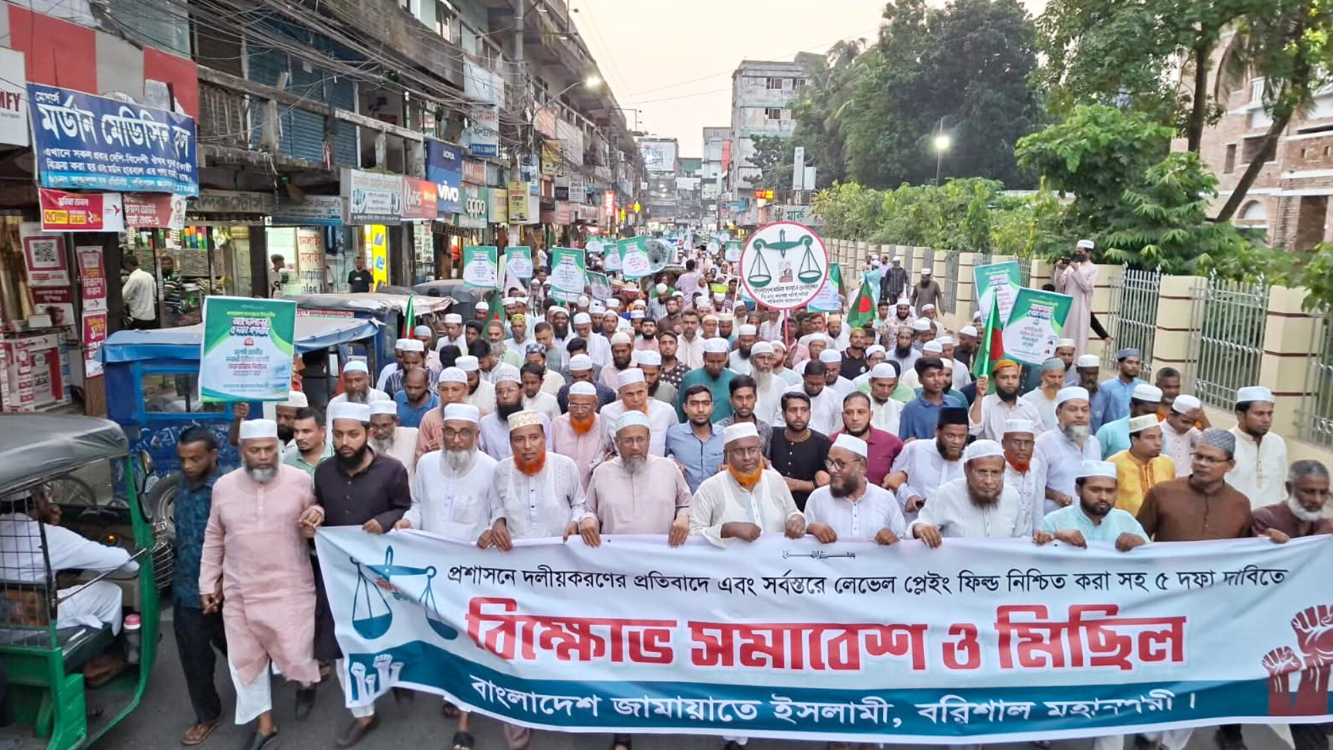 বরিশালে শনিবার (২৫ অক্টোবর) বিকেলে শহরের টাউন হল চত্ত্বরে আয়োজিত বিক্ষোভ সমাবেশে বক্তারা উল্লেখ করেছেন, বর্তমানে প্রশাসন একনায়ক বিশেষ রাজনৈতিক দলের নিয়ন্ত্রণে রয়েছে এবং এই অবস্থা শুধুই প্রতিহত করা যাবে গণতান্ত্রিক প্রতিষ্ঠান ও সাংবিধানিক নিয়মকানুন মজবুত করে। এই দাবিতে আয়োজিত সমাবেশে বাংলাদেশ জামায়াতে ইসলামী’র কেন্দ্রীয় কর্মপরিষদ সদস্য ও বরিশাল মহানগর আমির অধ্যক্ষ জহির উদ্দিন মু. বাবর বলেন, “জনদাবি হিসেবে অবিলম্বে ‘জুলাই সনদ’-এর আইনগত ভিত্তি দিতে হবে। তা না হলে দেশে আবারও স্বৈরাচার ফিরে আসার সম্ভাবনা আছে।”
