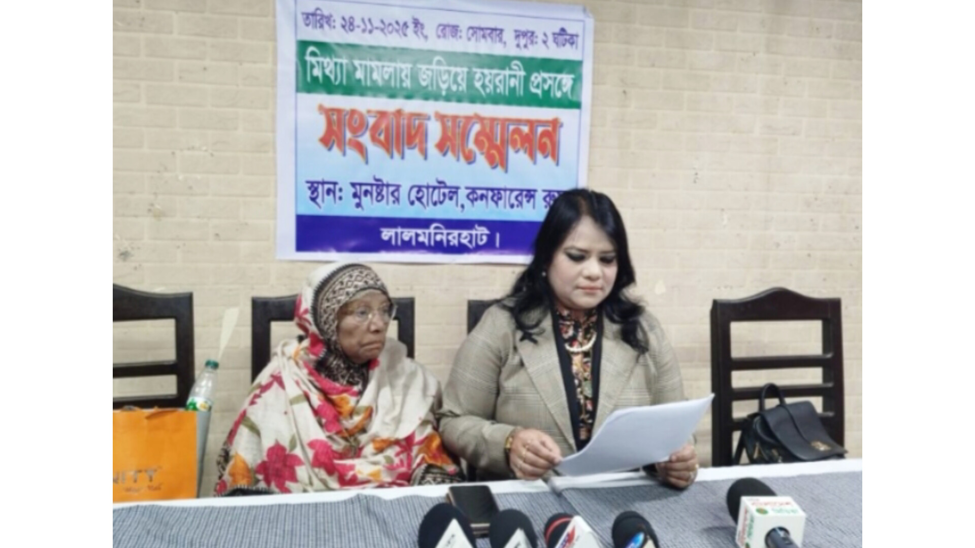 লালমনিরহাটে মিথ্যা মামলার মাধ্যমে হয়রানির অভিযোগ তুলে সংবাদ সম্মেলন করেছেন এস. তাবাসসুম রায়হান তামান্না নামের এক ভুক্তভোগী নারী। ২৪ নভেম্বর ২০২৫ ইং (সোমবার) দুপুরে জেলা শহরের একটি স্থানীয় রেস্টুরেন্টের কনফারেন্স রুমে তাঁর পরিবার ও স্থানীয় সচেতন নাগরিকদের উদ্যোগে এ সংবাদ সম্মেলন অনুষ্ঠিত হয়। তিনি লালমনিরহাটের কালীগঞ্জ উপজেলার কাশিরাম গ্রামের মৃত বজলে রহমানের কন্যা।